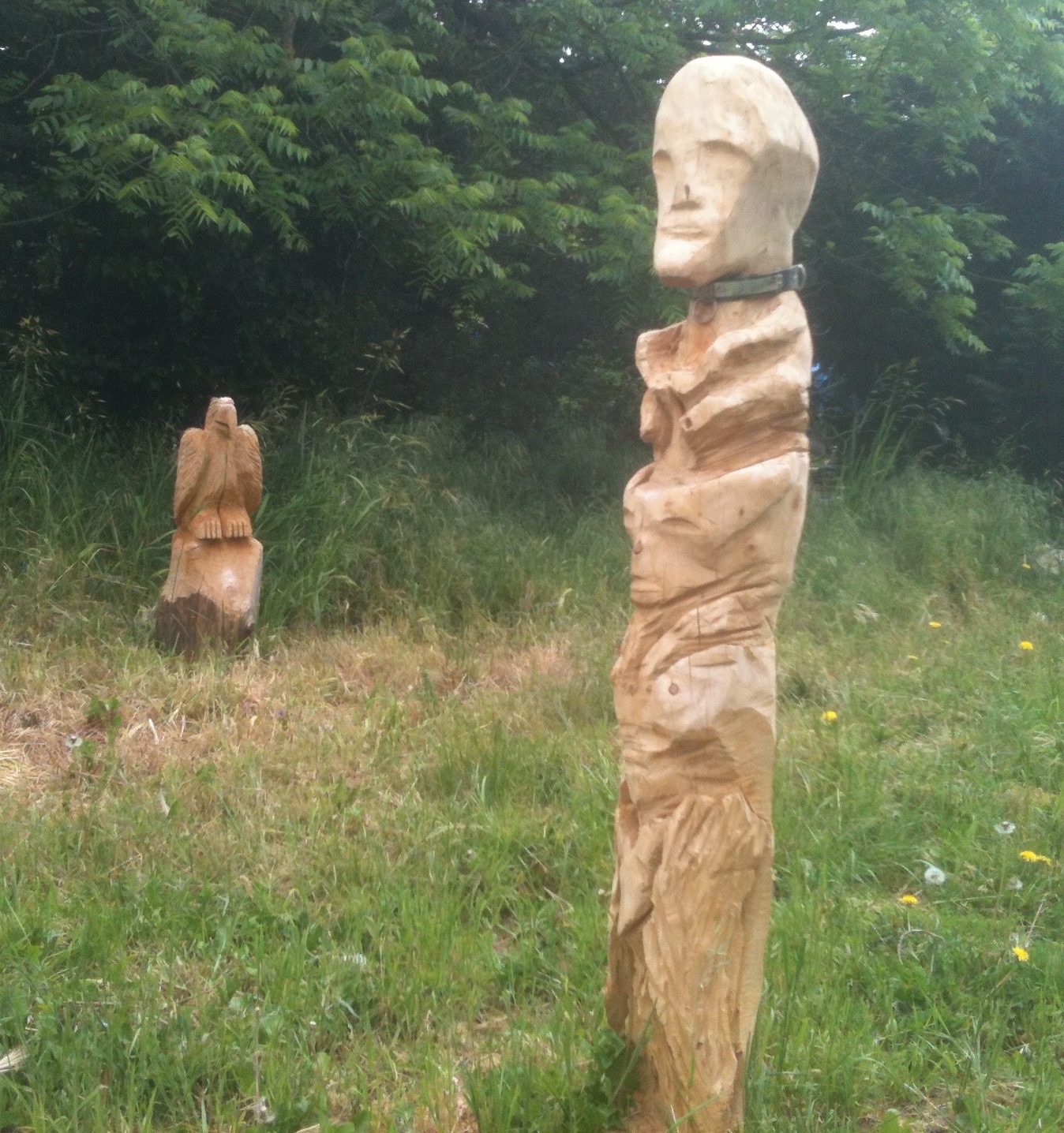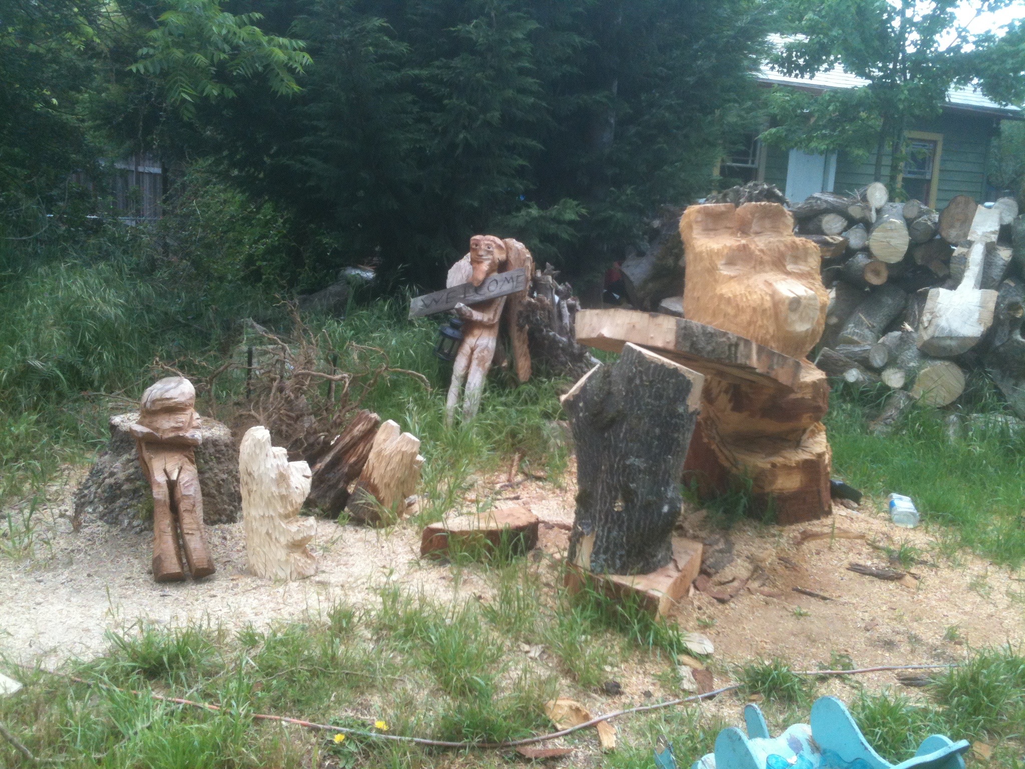 In a quiet neighborhood a block away from the bustle of the Interstate Fred Meyer lies something usually found in rural areas of the state. On a gravel pipestem driveway with scraps of trees as a border stand various log sculptures in an array of configurations and stages of completion. A carver’s camp of little know origin has sprung up at the intersection of N. Bryant St. and N. Montana Ave.
