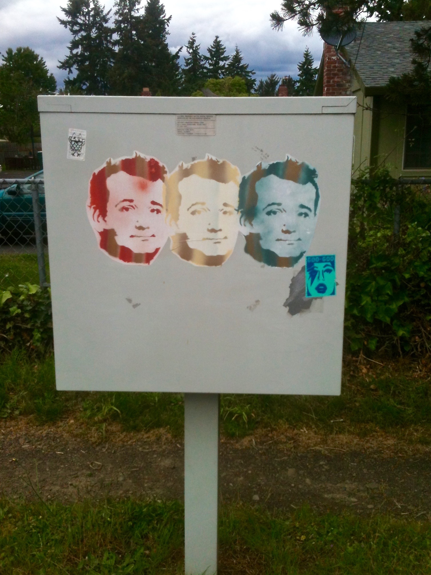 Hanging around the Cully neighborhood in northeast Portland on a recent substitute teaching assignment had me enduring minor transportation calamities in the way of two trashed/flat bike tires (thanks for helping Cat Six Cycles), discovering that a record shop called Jump Jump exists in the neighborhood and the possibility that germy kids put the kybosh on my ability to digest birthday celebration chicken wings. It’s all par for the course I’d have to say and finding Bill Murray’s face immortalized in artistic expression, in triplicate no less, soothed my soul and made it somehow worth it.