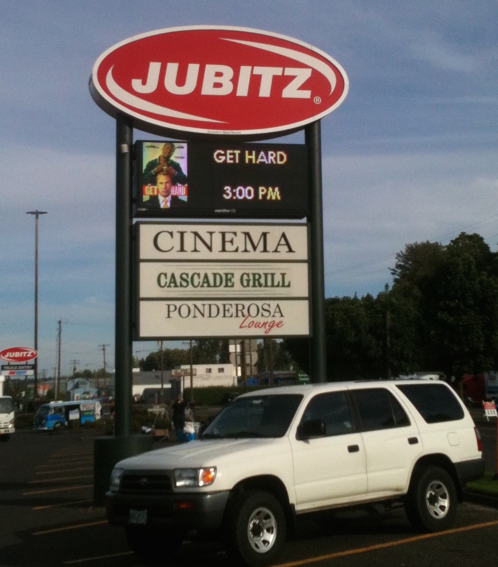I call the Portlander Inn and Marketplace hotline on most Fridays to see what the new movie is. My life is nothing if not routine. Often my wife, Ronna, and I find ourselves hitting the 6:45pm show on a Saturday night. They rotate movies every week. The first week it screens at 6:45pm the following week at 9:30pm with matinée shows as well. I’d find myself falling asleep at later screenings so we usually catch 6:45pm shows. The Willamette Week highlighted the whole truck stop from the shoe repair place to Moe’s Deli. With Jubitz on the local media radar it seemed like a good time to tell the tales of the truck stop cinema.