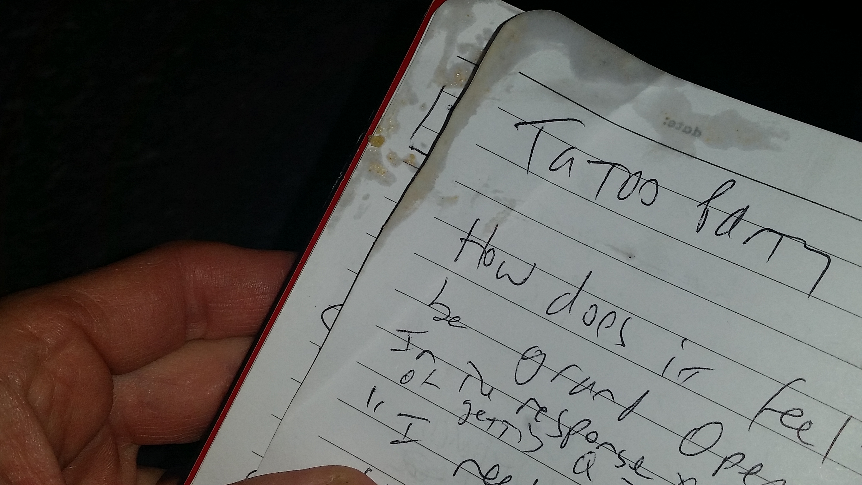 Mikal would “get a lot more information” about my choice of tattoos mentioning not being “judge and jury of someone’s tattoo or art choice.” In trying to hold on to tattooing’s rebellious nature and keeping distance from the corporate world, Gilmore mentioned declining to create a tattoo of a logo on someone. Our tattoo party ended with me spotting a thigh tattoo being shown off while also noticing I’d spilled hummus on my reporter’s notebook. In all, it had been a great way to visit a local business, talk to a few folks and get insight into tattoo philosophy.