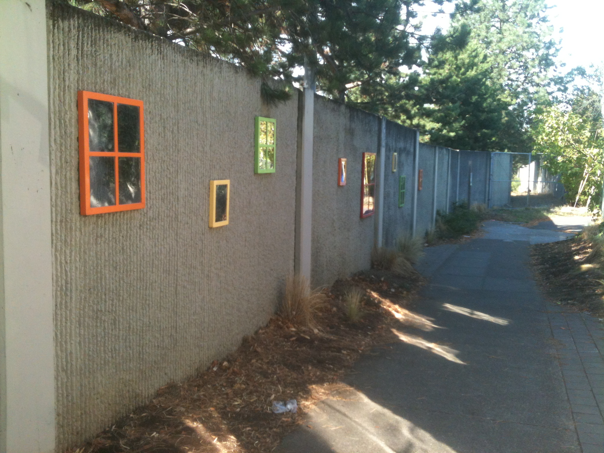 While the mirrors attract graffiti, they may in the long run focus vandals attention on a smaller target and keep them from trashing the hard to clean sound barrier stucco walls with spray paint.