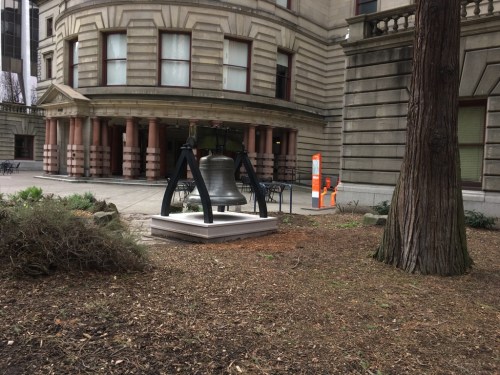 And yes, the Washington state bell can be found in Tacoma which makes the workings of this giveaway questionable. I’m left, sadly, with more questions than answers. I can’t tell you why Washington State’s bell is located in Tacoma and not Olympia. It is located next to a state building. And no, I never did find the reason Portland has a bell. I hope to have an answer in a future blog post. I can only appreciate the serendipitous joy of happening on the bell. It’s a bonus that its history includes a strange tale. Even the Portland Liberty Bell Replica is trying to keep it weird.