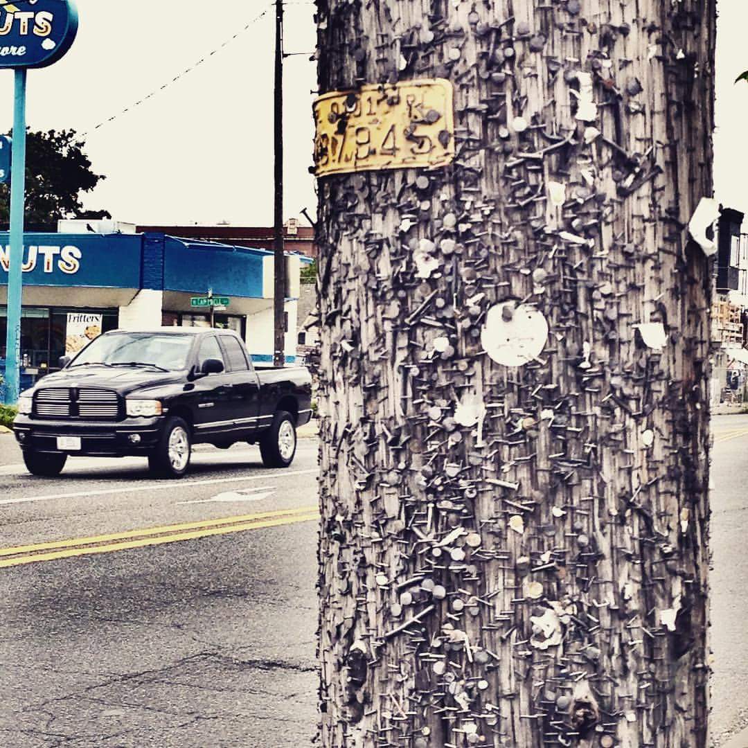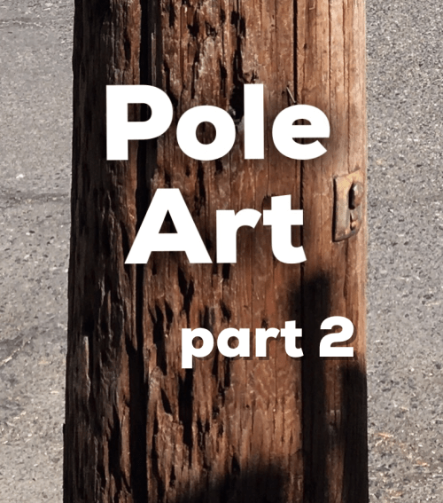 In a Pole Art overview we must also consider the art that’s inspired by utility poles. This is an example of a photograph that captures, in specific detail, what utility poles endure through the application of multiple heavy-duty staples and nails for posters and flyers. This frame freezes in time the world-weary, battle-scarred nature of the life of a North Lombard Avenue utility pole.