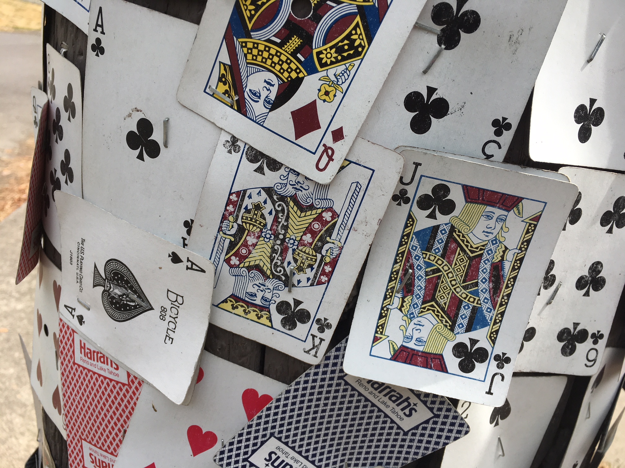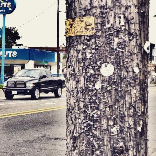 A pole covered in cards takes effort, vision and at least a couple of decks of cards. There isn’t a casino in the Portland area so this Pole Art feels out of place but it doesn’t have an inferiority complex about being artsy. Remember, too, Pole Art is a broad category. If you read last week’s post you know that anything stuck to a pole makes Pole Art.