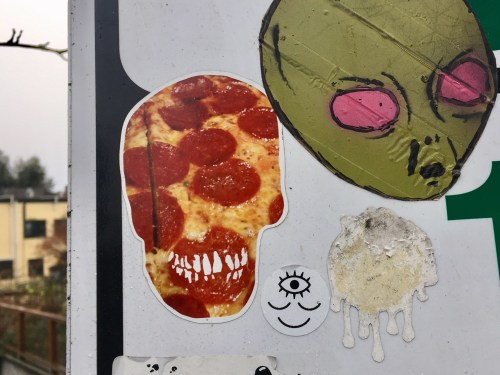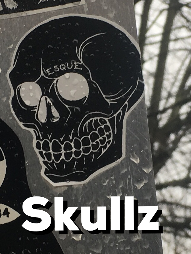 The last 5 skulls, including pizza skull, are all done by Arrex Skulls. He does lots of screenprinting for other artists. He’s in PDX, too, surprise!