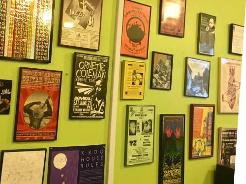 The station has the energy and atmosphere of any college radio station you might have had a chance to walk through. Posters, photos, notices and stickers were on every available surface. There were shelved records and cds, overheard political talk and of course, audio and broadcasting gear. I was standing in a hallway digesting a ginger snap when I was approached by Erin Yanke KBOO’s program director. She was kind enough to offer a station tour and a chat. The open house was celebrating the station’s present location of 35 years in the Central Eastside Industrial area. With previous locations in Belmont and downtown since the station began in 1968, it made sense to find a place where a lease with the option to own could be signed. “The way we get to think is different,” Erin explained about the past decision to buy a building. While KBOO is free from the hassles of a landlord or worries about rising rents, money is always a concern with aging equipment, keeping up with technological changes and paying a staff of twelve people.