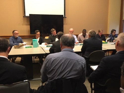 I headed into City Hall catching up with two neighbors who were part of my neighborhood association. I sensed the solidarity but being a fair weather meeting attendee I didn’t get a chance to explain why I wouldn’t be there long. Entering City Hall was not as bad as expected. There was a pat down with a magic wand/metal detector but I didn’t have to remove my shoes or empty my pockets. Then we set off to find the Pettygrove Room. The quarters were cramped but it’s hard to imagine most meetings being standing room only like this one.