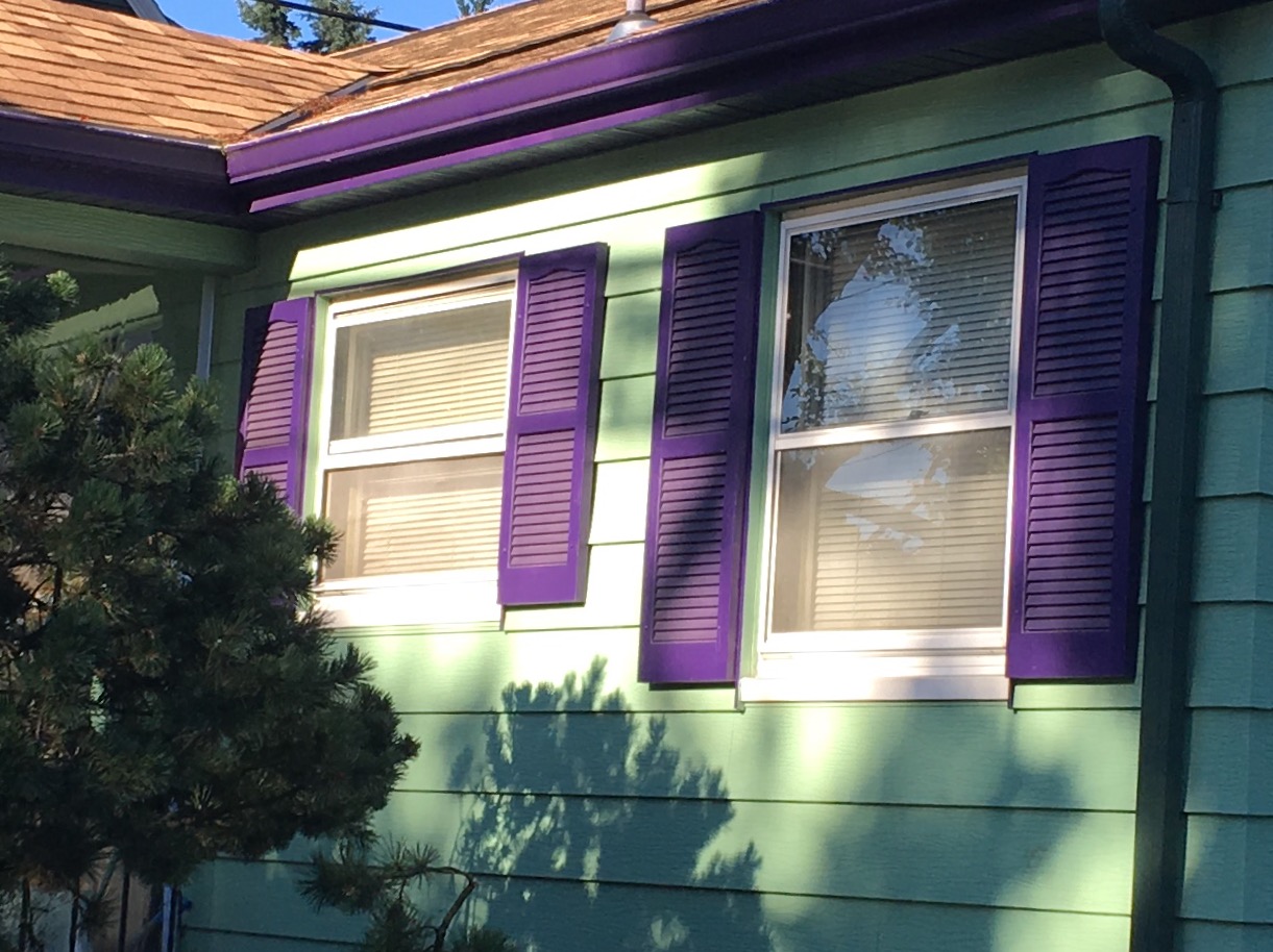 Since shudders have been relegated to a decorative element and aren’t as functional as they once were, this purple especially highlights their decorative nature. They look even better in the early morning summer light.