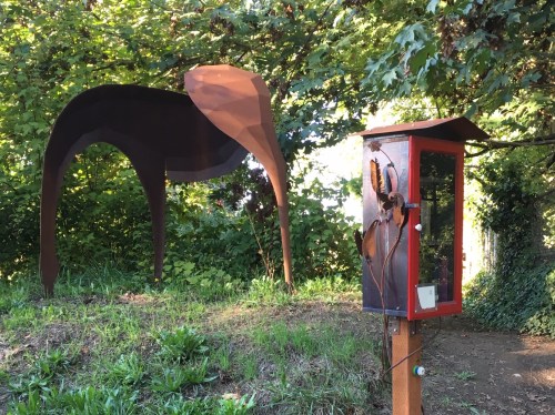 While I like the title Social Critic, that’s not really my aim in creating this blog, so I don’t want to be too vocal in what felt like a bit of disappointment in seeing Rabbit Hill compared to what it was intended to be. Many a project begins with the best of intentions and those relying on volunteer help can run out of momentum. The Facebook page seem to mirror this by being woefully out of date. It sure seemed like it had been a long time between pancake fundraisers. That’s not to say the place was decrepit. It wasn’t overgrown or overrun by graffiti. The elephant looking sculpture was elegant. It felt like a great place for local neighbors to walk dog or hang out to create and maintain art installations. It had the feel of a much-needed bit of space between all the industrial, road and train activity. My hope is that the area residents can get back to what they started.