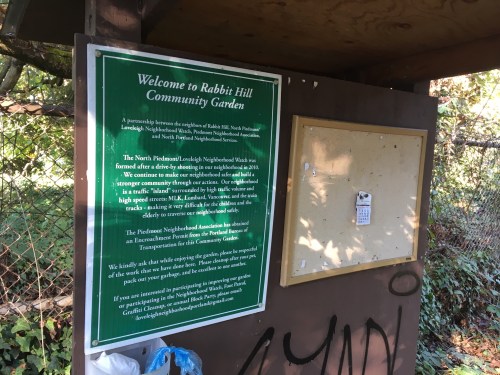 Anarchy symbol! Art garden! Bunny refuge! Only in Portland.