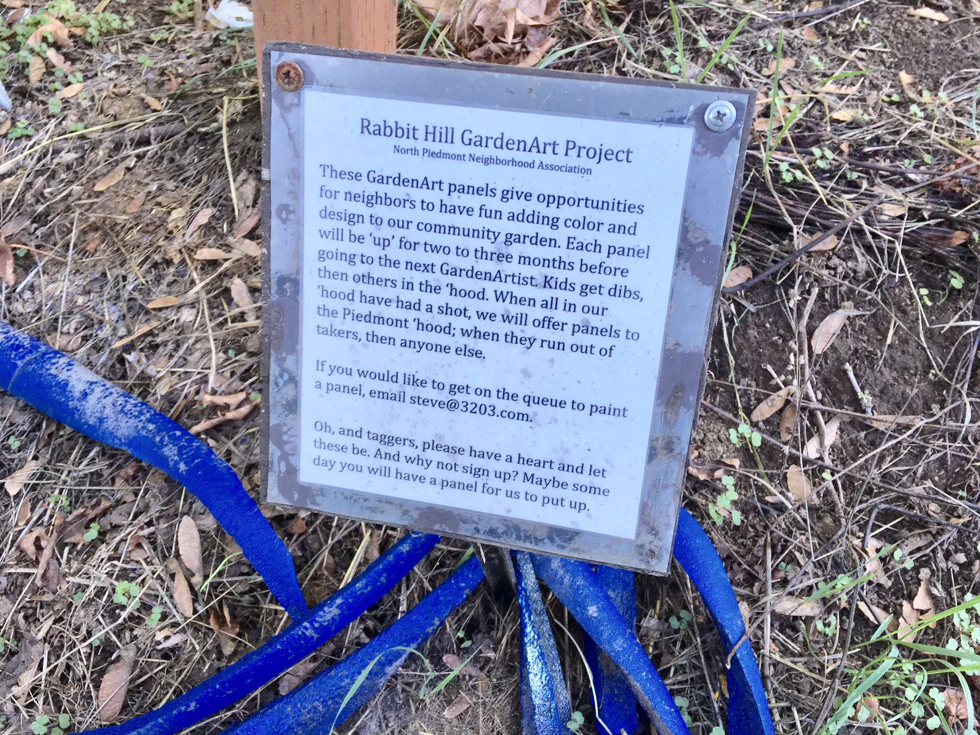 So tucked away in the Piedmont neighborhood was this patch of greenery along with the remains of some garden art made spooky by long afternoon shadows. The sign continued with a message about enjoying the park and being respectful. It included a reference to “Bill and Ted’s Excellent Adventure,” that I didn’t get right away.