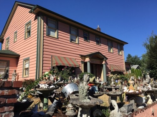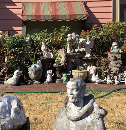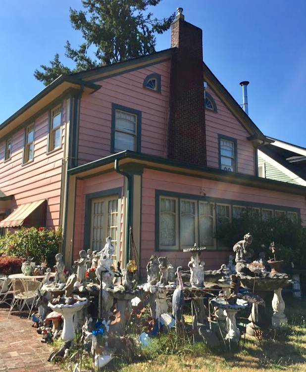 In the previous times I’d spotted this yard, my head always snapped back as I tried to catch a glimpse while speeding by on my way to get some place. It was a startling to see the yard in slow motion. The opportunity arose when Will Simmons from the Pittsburgh Orbit was in town for the World International Orbit conference held in August of 2017. On one of our many bike tours we headed through the Laurelhurst neighborhood on what had to have been Cesar Chavez Boulevard. Here was a place I’d been meaning to visit for a long time.