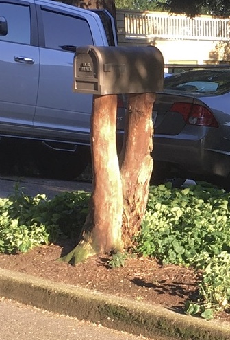 There was a time in my life when I could get excited about an oddly decorated mailbox. I still muster some enthusiasm but that’s a post for another time. Moving from North Portland to SW allowed me to rediscover mailboxes. In North Portland people had mail slots in their doors. In SW, what sidewalks I’ve encountered have mailboxes planted in them. Mailboxes are a great invention. They offer opportunities for creativity. This didn’t distract me from looking under mailboxes. It happened on a twilight walk heading towards Maricara Park on SW Maricara Street. I spied multiple posts that were not run-of-the-mill or generic. Ingenuity is happening on this street. Mailboxes are being supported in creative ways. This could be a competition among the neighbors or they might draw inspiration from each other. Either way, it makes a walk to the park more scenic.