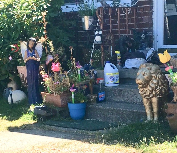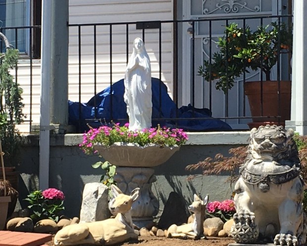 Mary has earned the right to be respected. While she winds up being yard decoration, there’s a need for her to be honored as a focal point to a design scheme. What I came across was disheartening. This Mary display was too unceremonious. To leave her on a doorstep hanging out with a random Francis or possibly Joseph seems like sacrilege. It’s a different story if she’s meant to ward off possible porch pirates. Here’s hoping Mary has the power to make someone think twice about committing theft.
