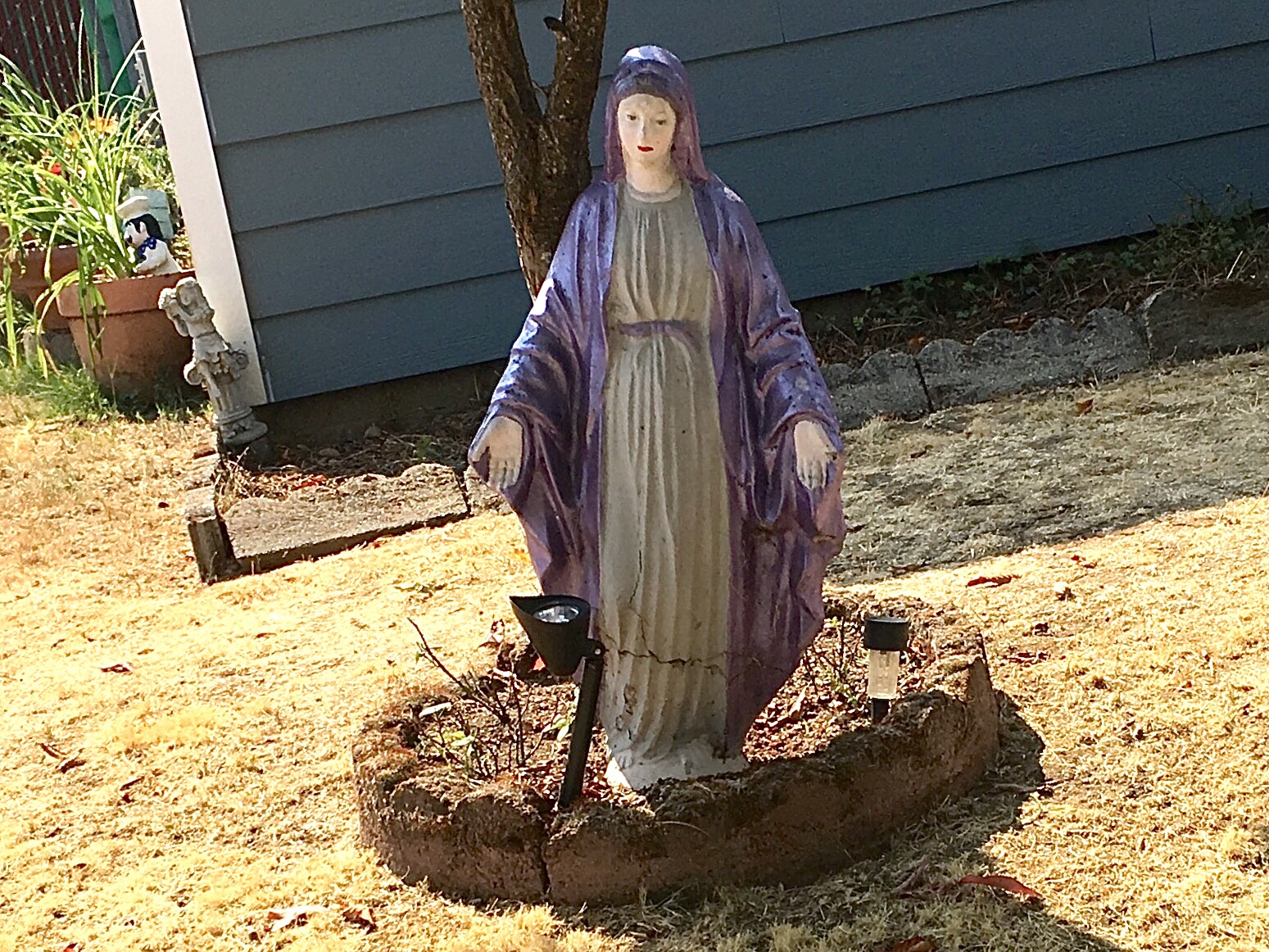 I couldn’t think of a better way to honor mothers than write about one of the greats. She entered motherhood under tough circumstances having to bed down in a manger with barnyard animals. Since then she’s been sainted, name dropped in a Beatles song and has been named after countless churches including a famous Paris cathedral. It shouldn’t be a surprise that people honor her, in statuary form, with a place of residence in their yard.