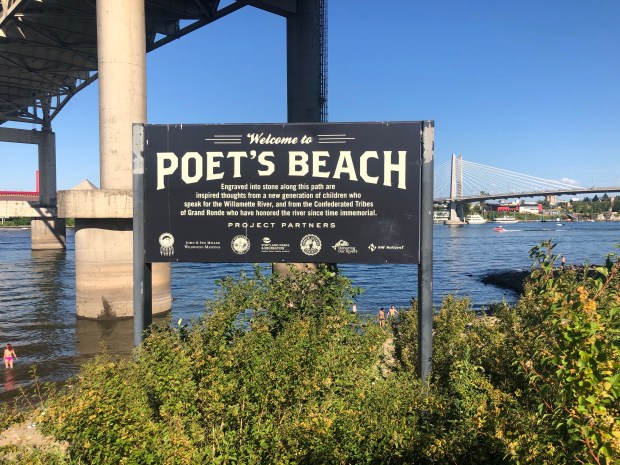 We’d know about Poet’s Beach since it opened. The city’s public relations staff got the word out. It’s now a tradition to make at least one visit each summer to this makeshift beach under the Marquam Bridge. It was the end point of the Portlandia Mermaid Parade allowing the assembled mermaids a place to take a dip. The lines of student poetry inscribed on the rocks leading to the beach have faded somewhat but the beach area is wide for a steady stream of visitors. The river is clean, thanks to the big dig project making a rare occurrence out of the sewage overflows that used to make the river unsafe for swimming at times.