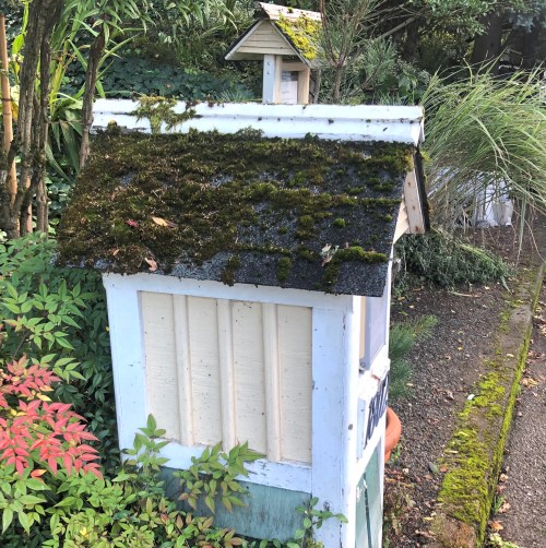 In time, a mailbox covering, like the one seen in Far Southwest, will fade, chip and peel but it continues to add character lacking in standard mailbox designs. The birds haven’t flown away, while the branches and pine needle boughs blend in with the surrounding overgrowth.
