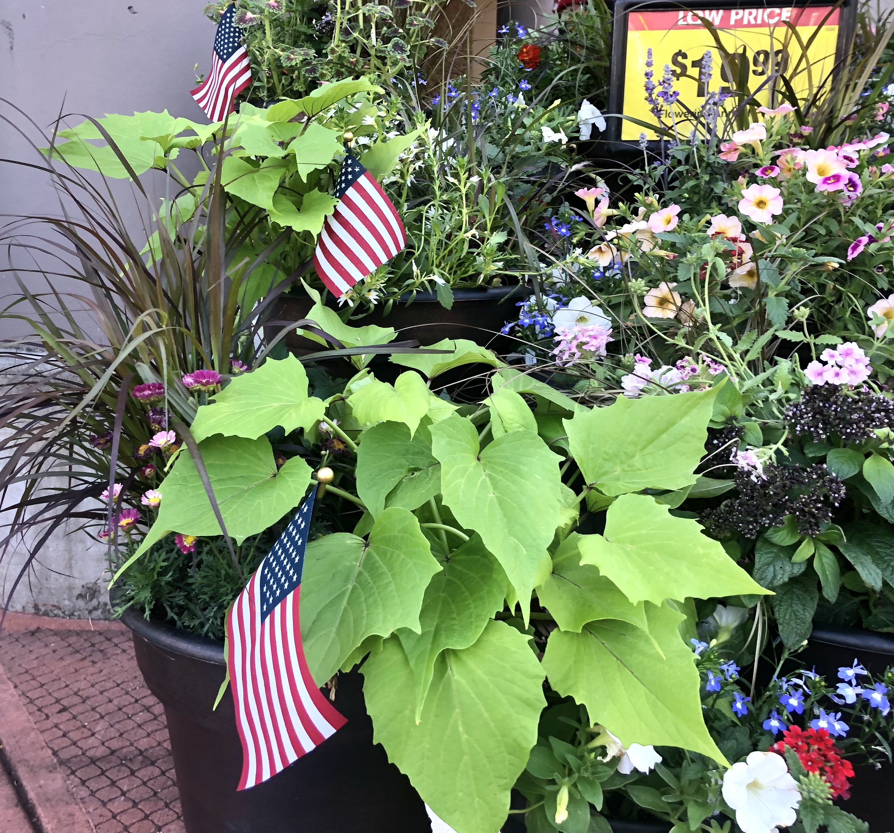It’s up the driveway in the Crestwood neighborhood and stealthily planted in an old flower pot but this flag subtly whispers, “It’s the Fourth of July” and “hey, American Flag alert over here” and, oh yeah, “I’m here up the driveway ushering in the most American of all the holidays.” The flag looks fine sandwiched in between a retired banner and a bag of something. Old Glory never looked better even when it’s almost unnoticeable.