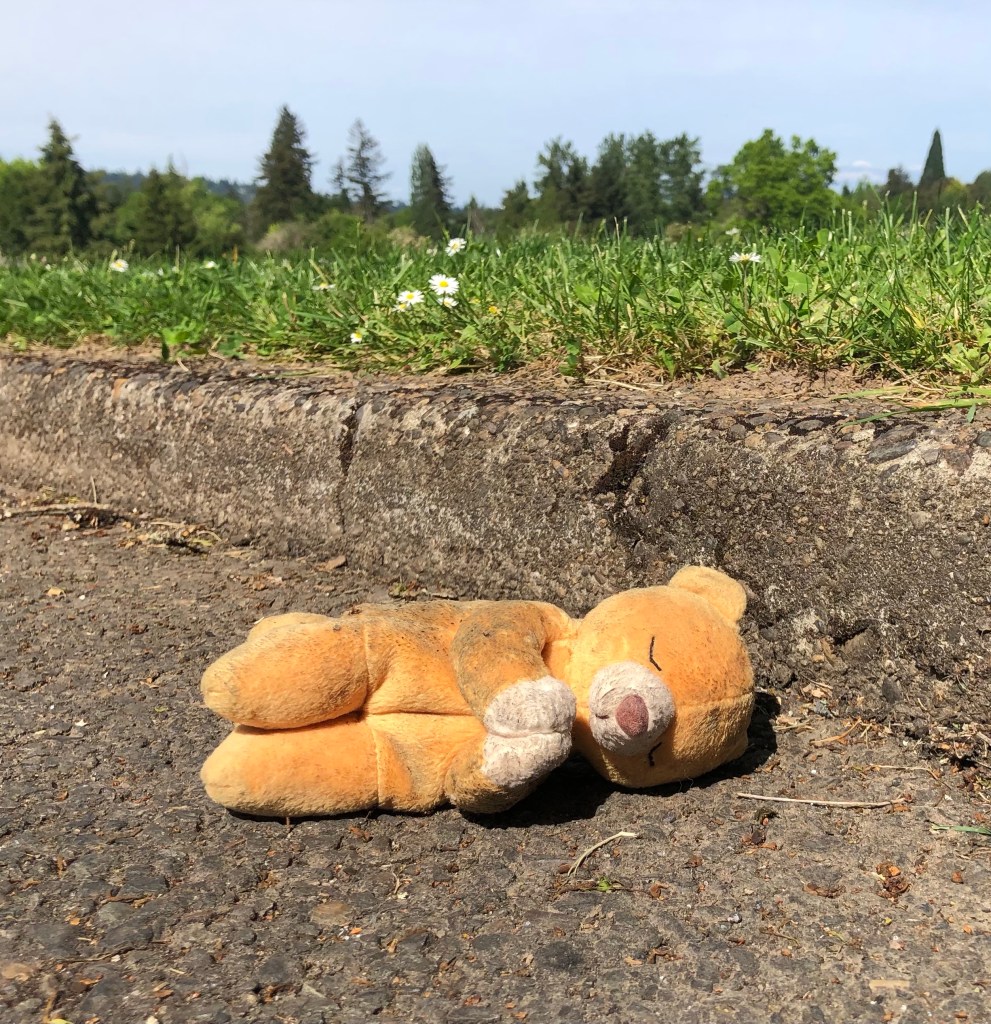 Not all discarded toys are sad toys as you too will discover with continued reading. The sad toy descriptor was something I picked up from The Pittsburgh Orbit and it has its origins beyond that. My eyes were open to the plight of these orphaned toys for the purposes of documentation. I don’t have room in my heart or my home to offer them a place to live. It had been awhile since I’d seen any sad toys. Then they appeared to me in droves. There’s an intriguing juxtaposition when something is not where you’d expect to see it, a fluffy toy curled up curbside for instance. The toys seem a long way from a cozy toy box. For the record this post mostly features portraits of lost toys found in my West Portland Park neighborhood except where noted.