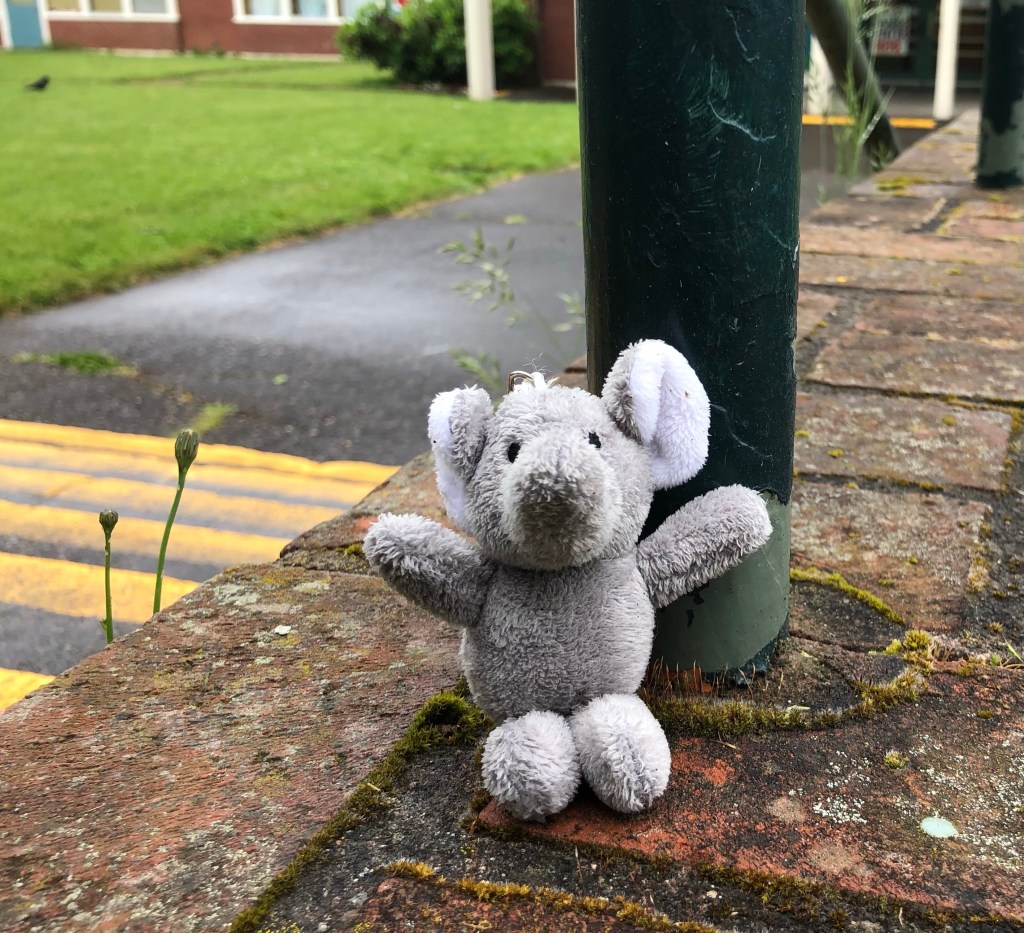 Imagine being an elephant discarded in a school yard. This little guy seems able to overlook this, reaching out for a big hug to any passerby willing to return the love.