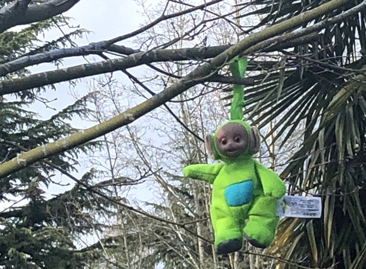The purple Teletubbie, Tinky Winky, made an appearance in this year’s Prince Tribute. So how could a character from Teletubies be considered sad? Try hanging around in a tree with a head strap in the elements like Dipsy here. A diet of ice, rain, hail, snow, wind and sun will do things to your brain. .