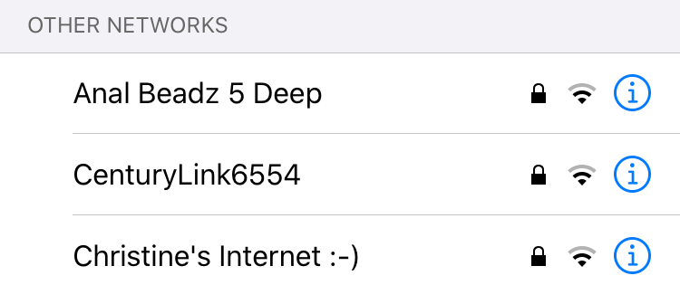 These freak me out. Don’t people know other people can see the names of their networks?