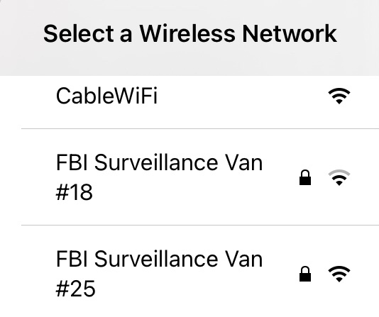 What is it with surveillance and van’s being used for names of networks? Something feels sinister about it. It’s as if someone wants a surveillance van in their neighborhood hacking into their network or watching them as they access the internet. How does Justin Bieber get his own surveillance van? Does he hang out there when he’s not on tour?