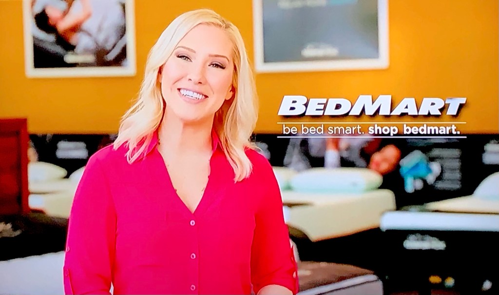 This celebrity has me harkening back to the days of Bedmart Mom and actually missing her a bit. As far as I know this spokesperson is anonymous while Bedmart Mom wasn’t. In the old commercials a woman introduced herself as Bedmart Mom as she splayed herself across a bed wearing silk pajamas. Mom was unceremoniously fazed out for a younger model who is upbeat, personable and smiley.