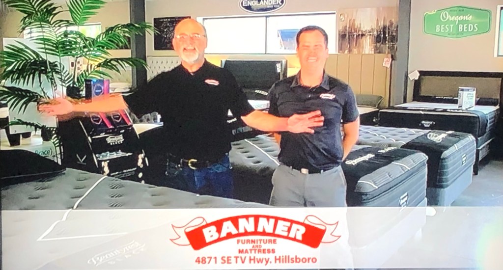 This father and son team has fun making commercials and it shows. This photo is part of a sequence where the Dad knocks his son onto a mattress. Slapstick sells. It makes me appreciate the entertaining bits these guys come up with for their advertisements.