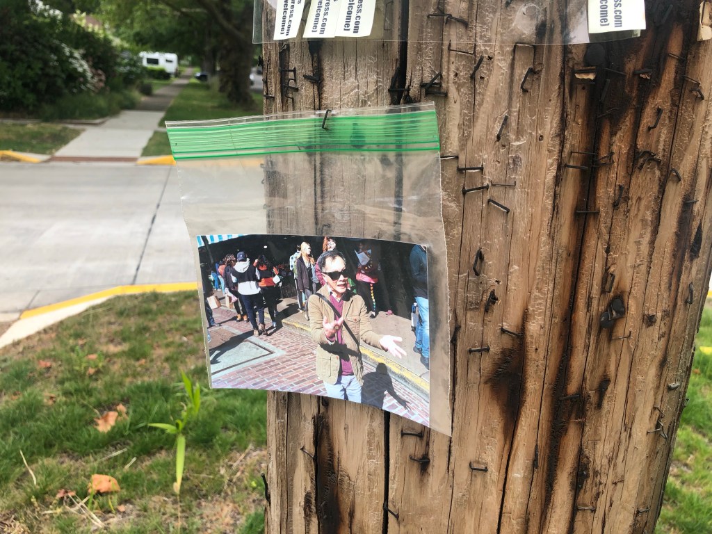 I was more curious about this art. What’s the meaning behind a bagged photo nailed to a pole? Is it a lost and found situation or a spontaneous pole art gallery? How could this matter?  Here’s a random, yet interesting photo, possibly taken on the other side of the world, in a novel frame. I enjoyed it for a few seconds but I’ll be pondering the meaning of my picture of that picture for many more.