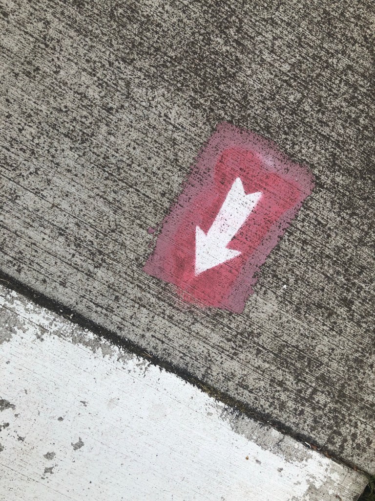 I don’t understand my love of arrows. I just like them. This spray painted version decorating the sidewalk with possible practical applications was inspirational to me.