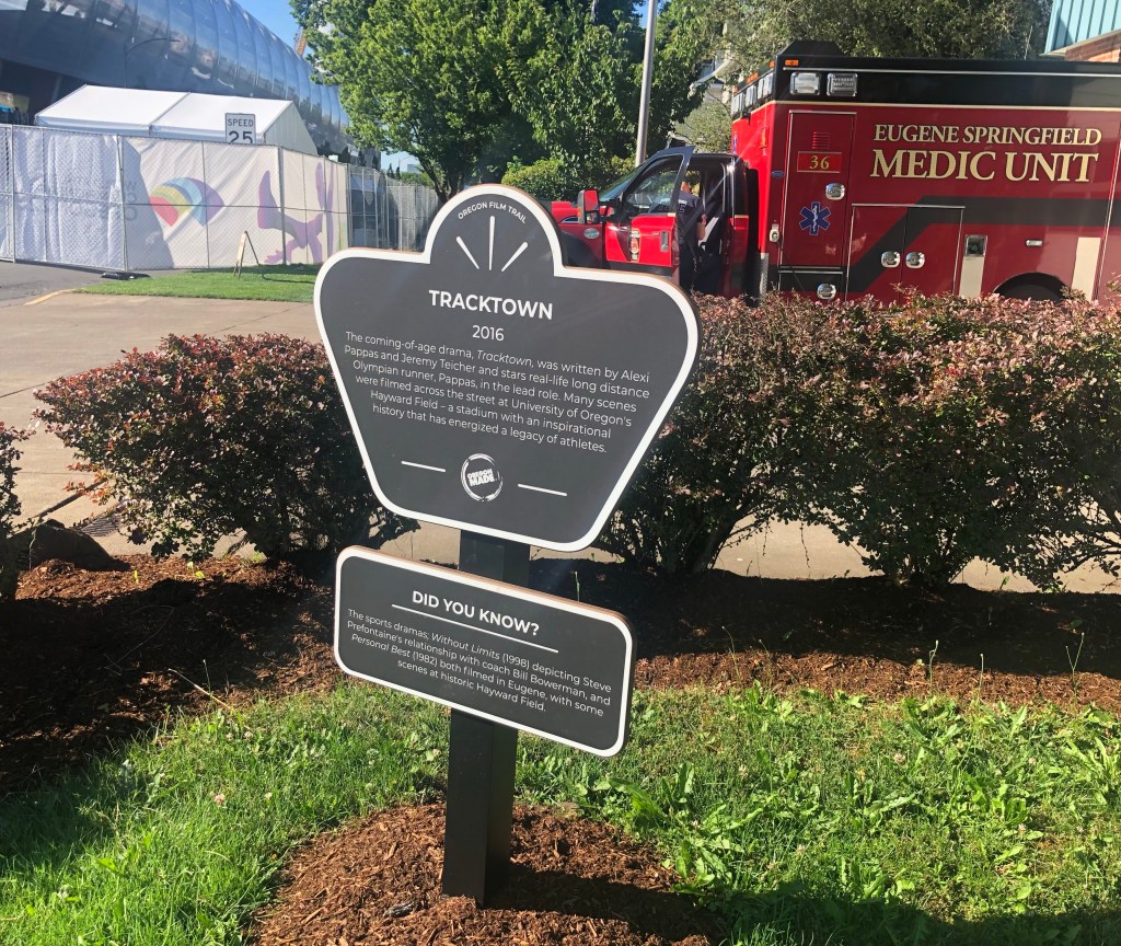The infamous movie Animal House was filmed on the University of Oregon campus in the 70’s. Surely there are Oregon Film Trail signs noting specific film locations there. I didn’t get a chance to see them but when I noticed this sign on the grounds of a fire station I had to investigate. The old Hayward Field was used in multiple movies, even getting a visit from Mariel Hemmingway. It may not get better than that.