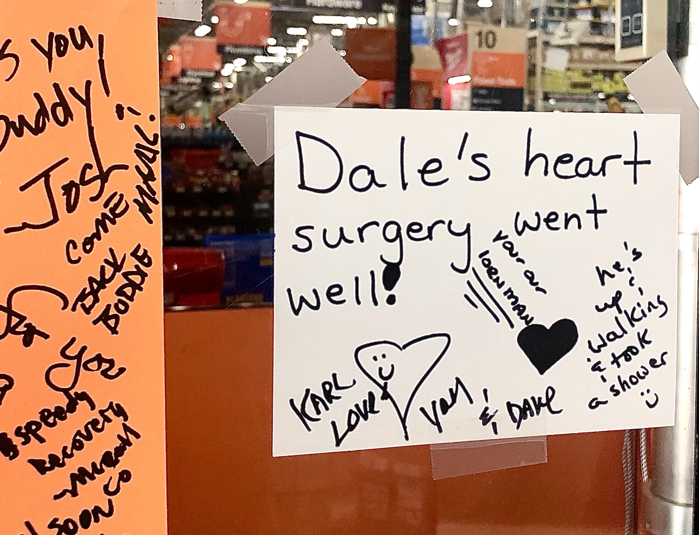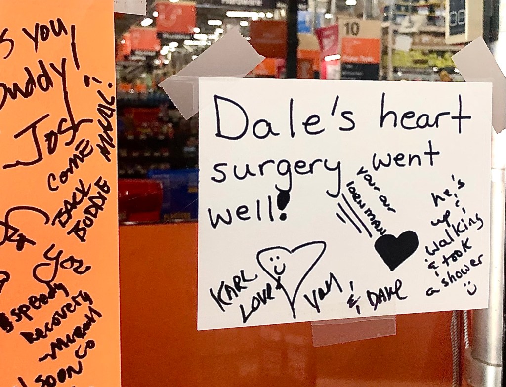 Signs were everywhere in Eugene. Sometimes they addressed mundane issues about where to wash or not wash things. The colorful sign above was spotted on the way to the Pre’s Rock. And I shopped a whole lot better knowing Dale’s surgery went well.