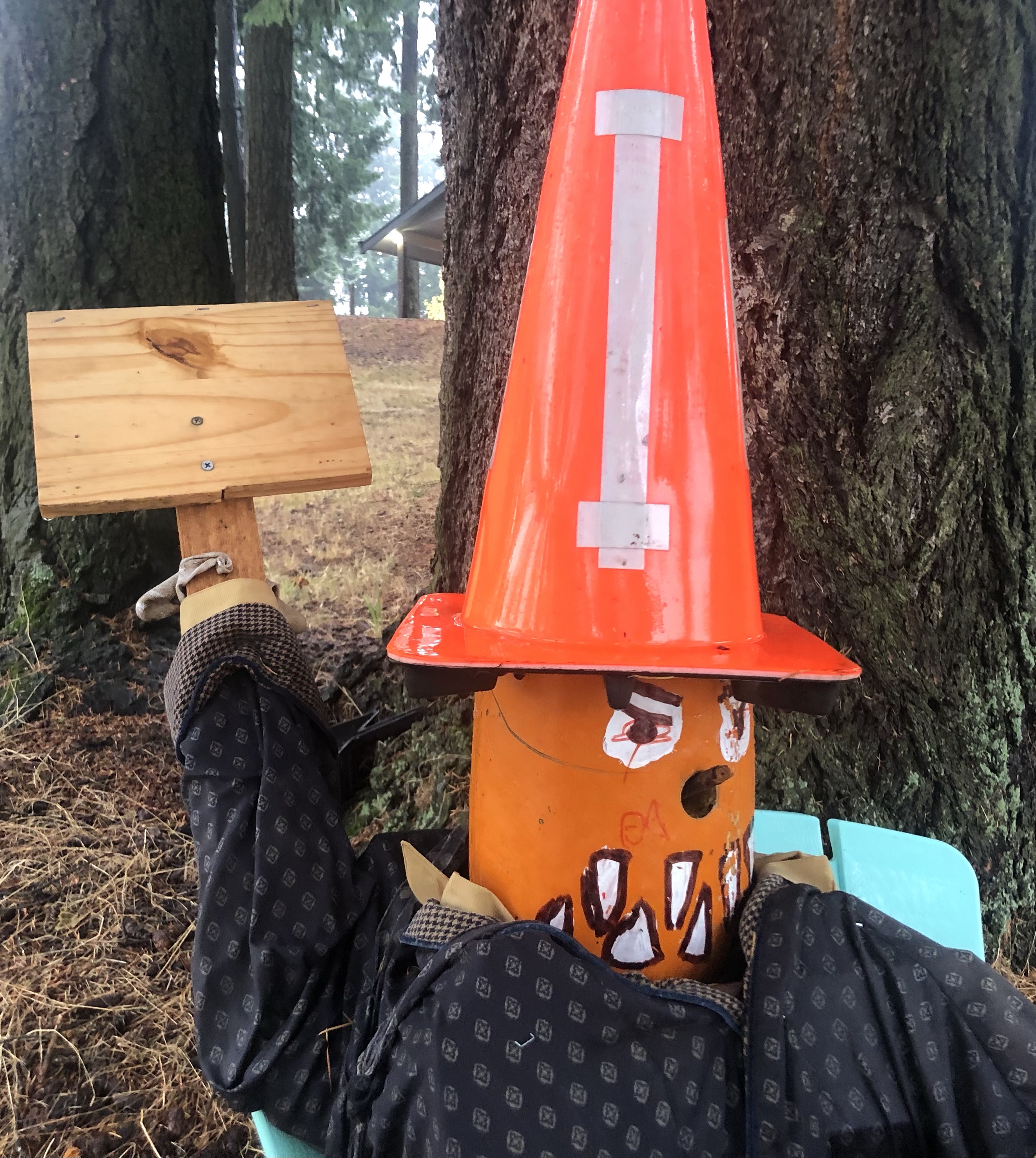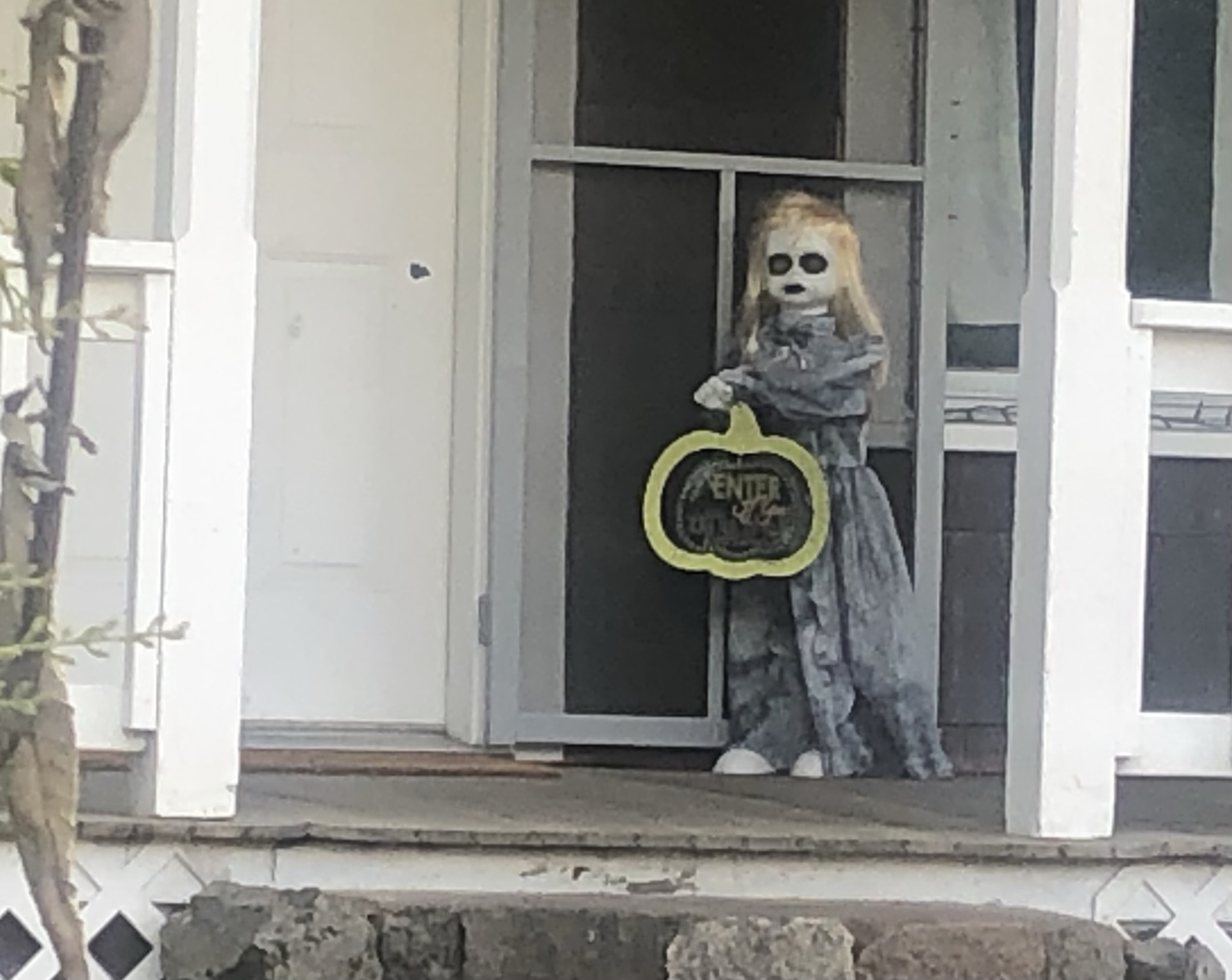 Meanwhile, I continue to wonder about the sign that’s blank. There’s something wrong with this unless he’s actually holding a paddle. What do you expect from Halloween sculptures? Most days you have to enjoy any and all forms of seasonal decor and the unsung efforts that go into producing them. That’s the real spirit of this season.