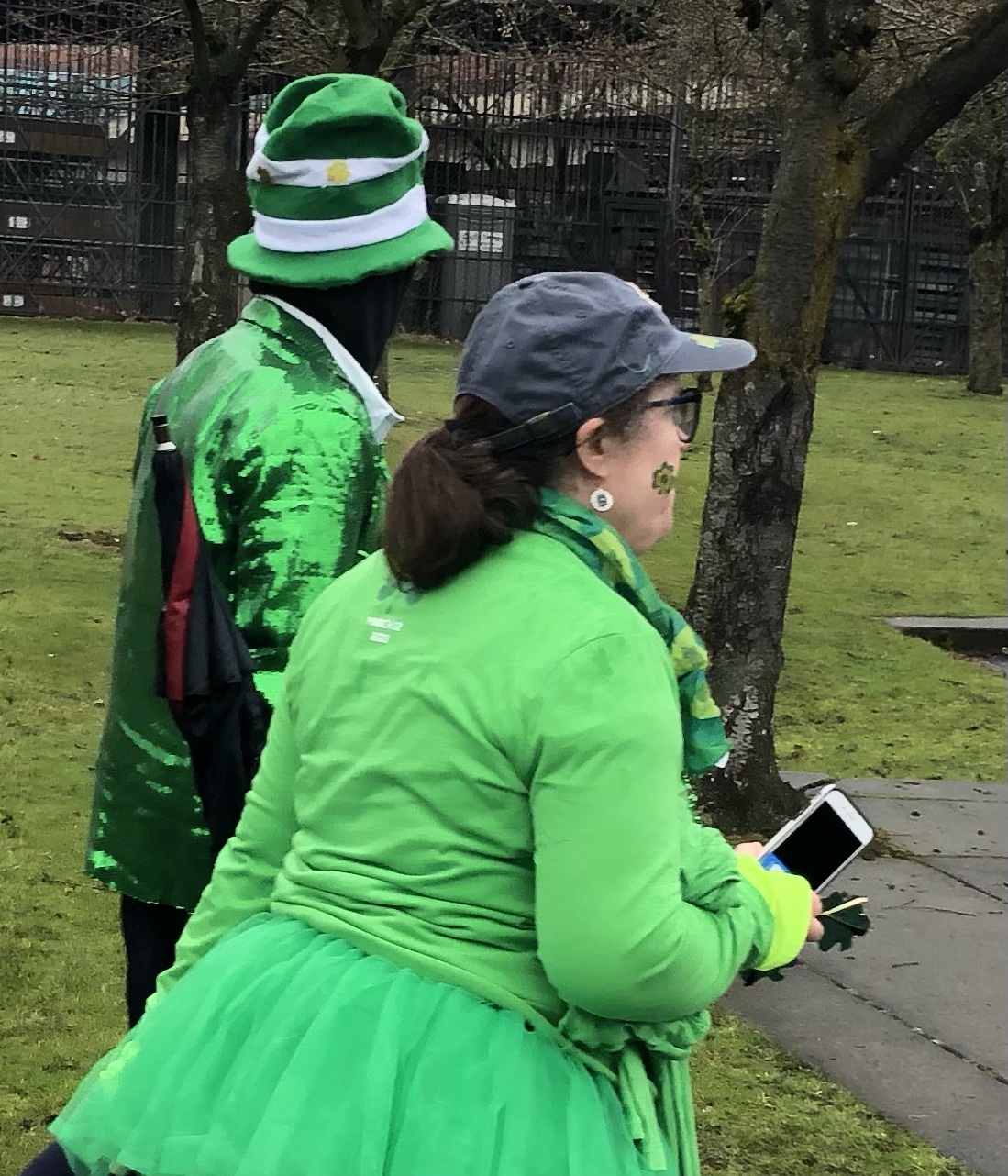 Leprechaun fashion shows are typically boring affairs. Due to stringent dress codes, the Spring collection is always exactly the same. People go rogue thinking they can wear what they want as if it won’t anger the Leprechauns. A shiny green jacket paired with a Leprechaun Seuss Hat while accompanied by someone wearing a tutu too, had the feel of a couple headed to the green carpet for a Leprechaun film premiere.