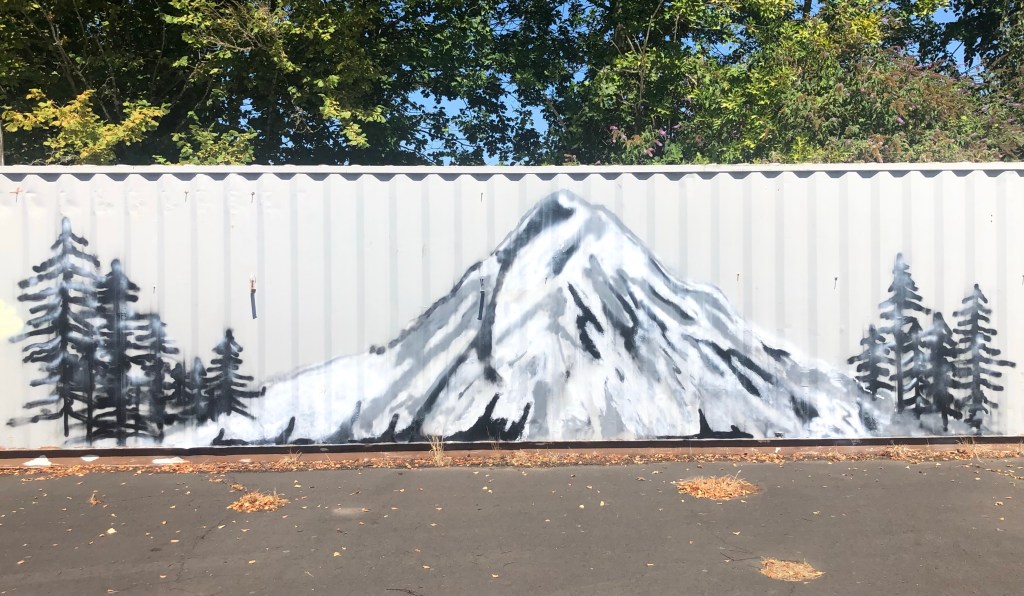 Spotted heading down Lombard Ave in NE Portland, this Mt. Hood portrait looks great on a storage trailer. You’ll find this art in the Cully neighborhood where the artist made good use of this metal canvas. It sure spruces up the trailer. Tree pun intended, oh yeah.