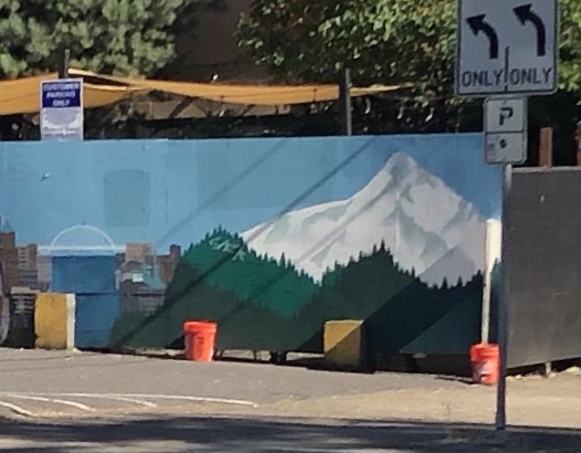 The welcome to Arbor Lodge sign is an excellent use of the Mt. Hood image. The sign design is epic with twisted and branch fonts, surrounding a powdery Mt. Hood. It’s a pleasing scene although not quite what you’d see in the neighborhood. Mt. Hood can feel like an Arbor Lodge neighbor, especially when you can get a house with a distant mountain view from at least one of the upstairs windows. Ultimately, the sign reminds us there’s a giant mountain lurking around.