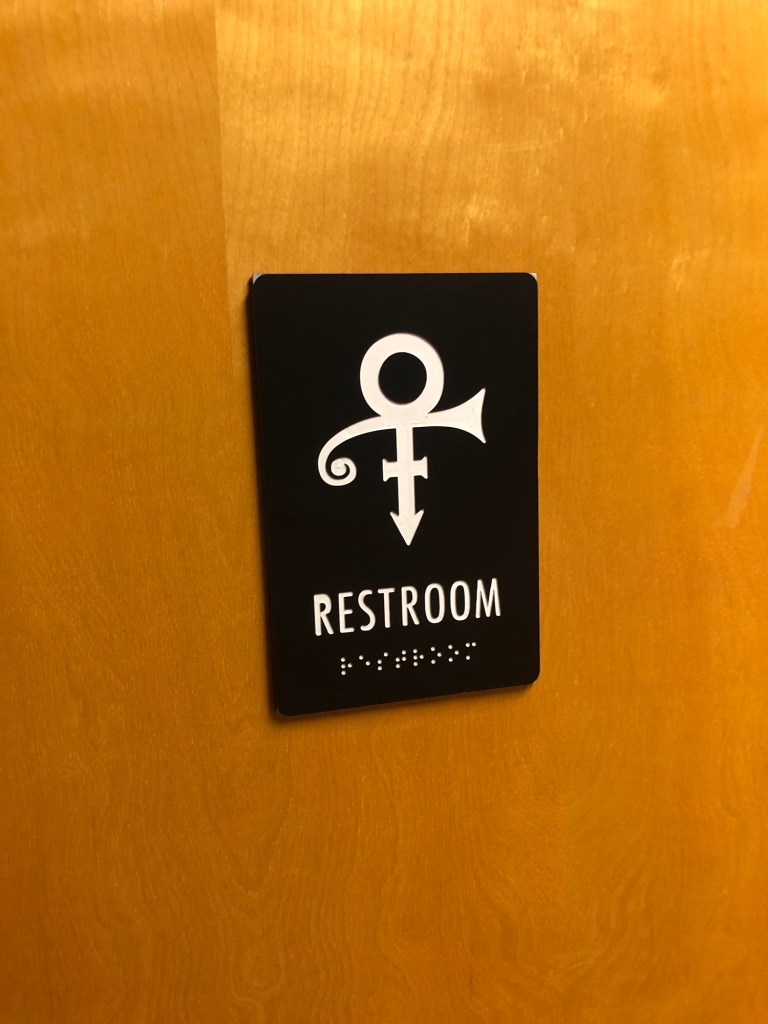 I was surprised by one thing in your photo essay. The restroom sign bearing Prince’s famous multi-gender symbol. Why in the world would someone go through the trouble of making it and not make it purple?