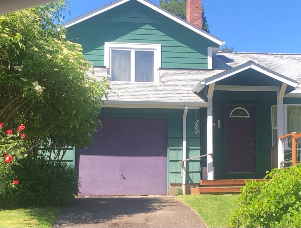 Purple garage and door, Maplewood neighborhood.