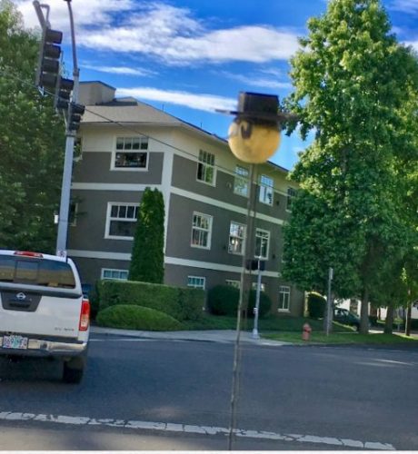 Well then do you have to replace them? Sometimes yeah, I do, you know the plastic ones get old and brittle so eventually they break off and then I had, what I’d call the apocalypse one year, I think it was 2012, where I came outside in the morning and somebody had broken five different trophies off and had unscrewed a bunch of other ones. So you know, it is what it is. And every now and then when I’m downtown I’ll lose one. One time I had parked downtown on Burnside and Broadway, and I was like, “man, I shouldn’t park here, I’m going to lose one and we came back and one of them was broken off and I’m like, “oh man, really and then I found it in the back seat of the car next to a PBR can that said sorry and it was a full beer and I’m like that’s really nice they accidently broke off the trophy and they left me a PBR because as you can see people can reach in and take what ever they want out of the car.