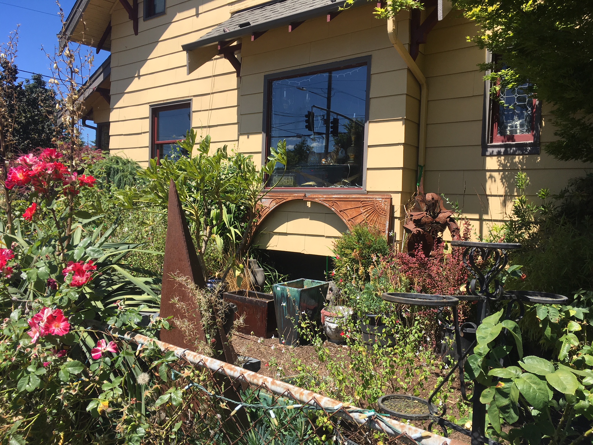 I was interested in painted benches on Alberta Street. I didn’t realize until later that this was a brightly decorated, psychedelic, owl possibly of Aztec descent. The look in his eyes makes me think he might be angry about people sitting on his beak. I can’t imagine how many more owls I’ll see since I’ve opened this can of owls. Perhaps, by now, you’re as sick of them as I am.