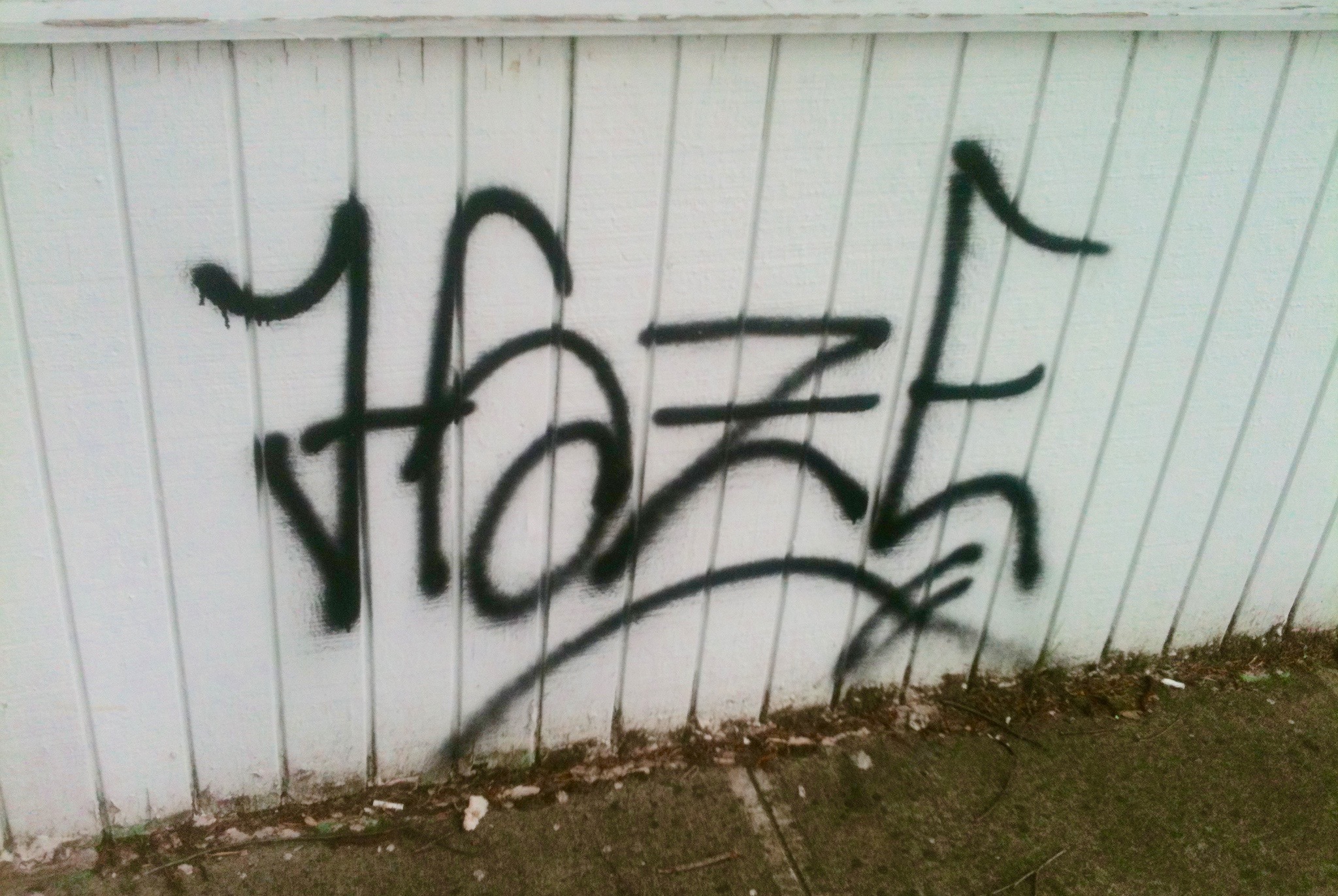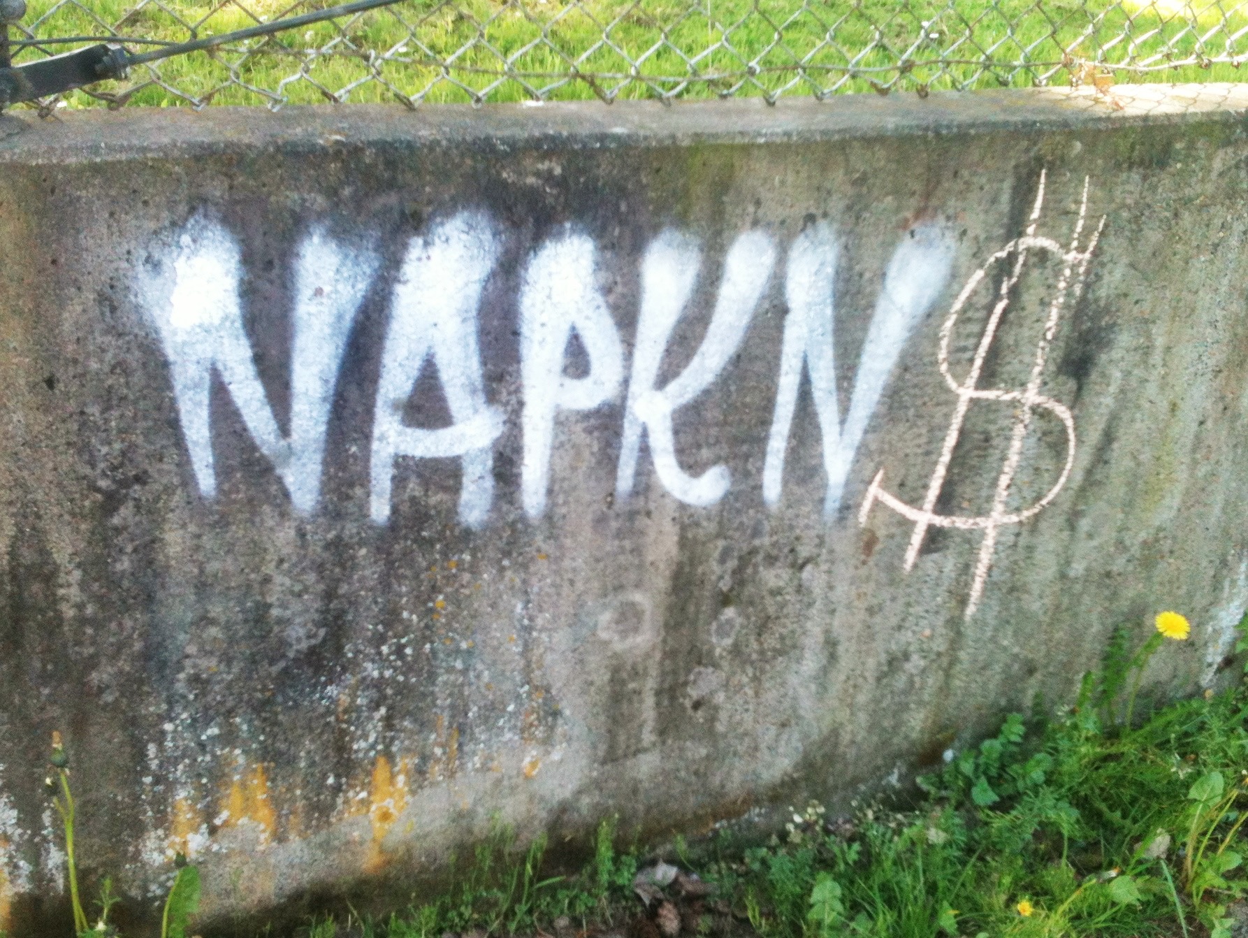 Spray paint creates half-assed designs resembling bananas that, at least in the past, could be seen being unloaded on Swan Island below. Pole Art can and will imitate life at times.