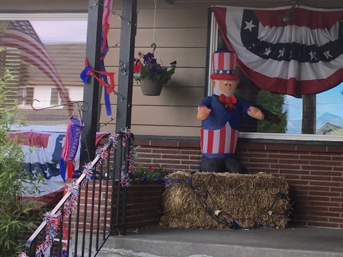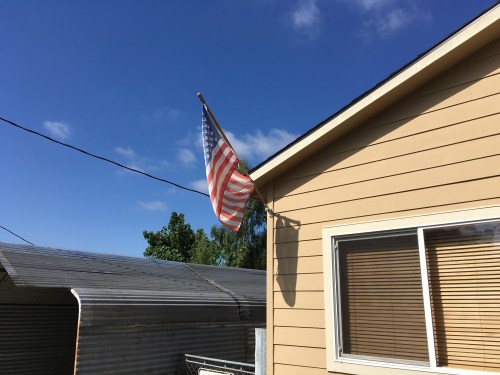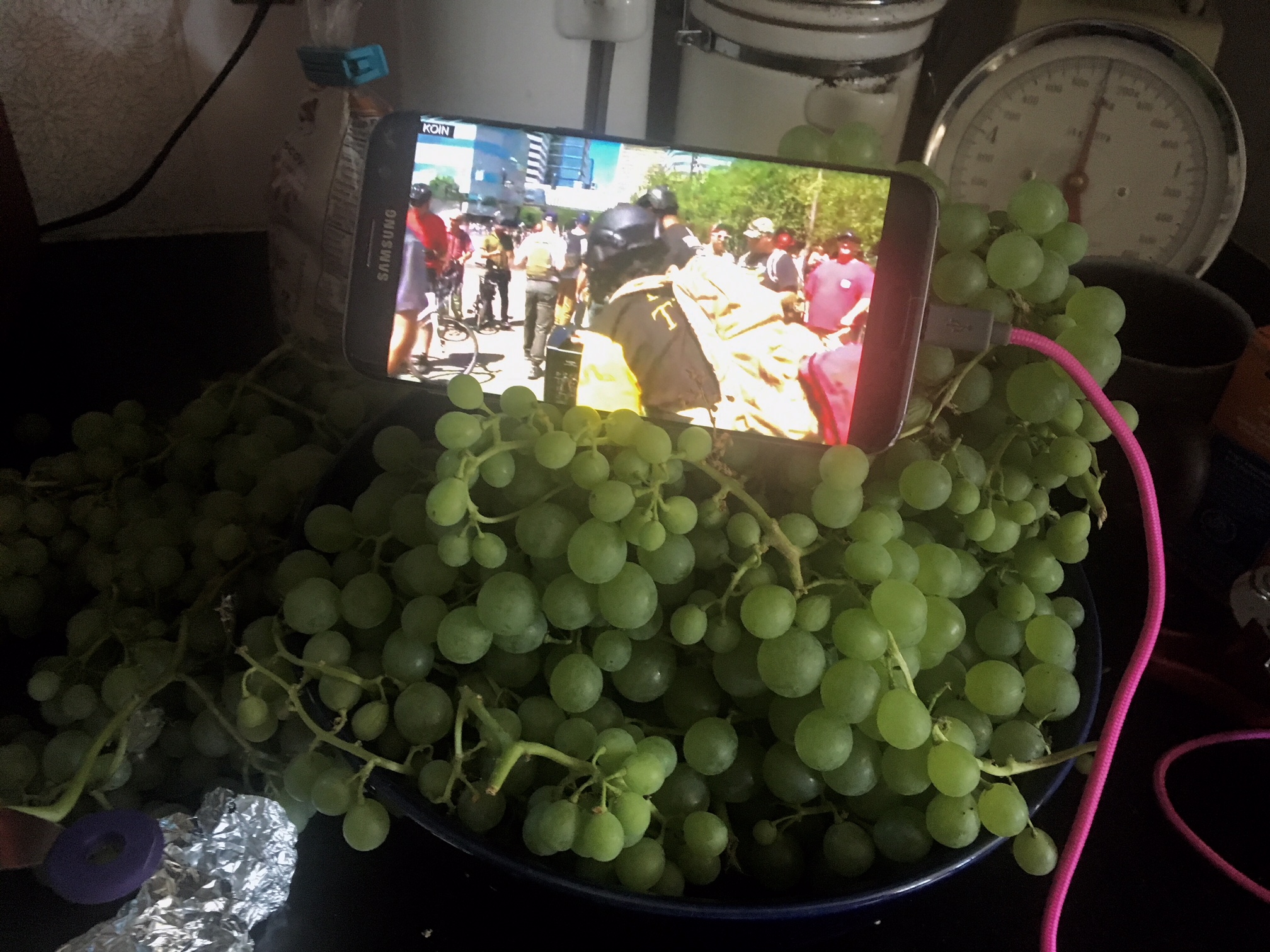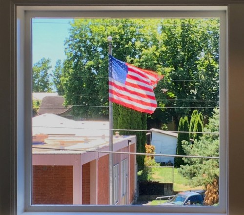 The third pot of coffee had me pacing and writing illegible notes. An out-of-town interviewee described a festive atmosphere and was impressed that a brass band showed up. The feed sputtered and someone cussed. KGW-TV apologized. I lost the feed when my battery died so we switched to another phone. KGW-TV was on the counter-protest side explaining that they couldn’t cross the street due to police orders. I switched to KOIN coverage which was in the middle of the Patriot Prayer Rally. “It’s not about the hate over there,” Gibson was saying. It seemed like time to make potato chips. Soon after, on the Patriot Prayer side, a discussion of a dance-off began. I was thinking Joey Gibson doesn’t look like a dancer but I had no evidence of this. The whole notion of the people downtown that day channeling their aggression through dance seemed absurd but it would have been an attempt at unity. Not much was happening with the Patriot’s Prayer Rally. Would there be group prayer, recitations of the Pledge of Allegiance or more standing around?