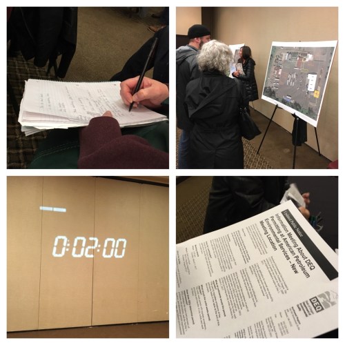 Our Kenton neighborhood star Steven Glickman offered to pay for a permit to get a monitor to put on the stack. He had been the first to ask a question and later in the meeting the first to make a comment. He must have gotten there early. I felt lucky to have people with scientific knowledge challenging the DEQ representatives. It held them more accountable and didn’t allow them to hoodwink the audience with circuitous mumbo jumbo. The state was accused of not monitoring “this stuff” because it’s bad for business. One questioner made the point that the DEQ employees feared corporations more than the taxpayers. An insider to the oil recycling business offered up what felt like whistle blower details when he mentioned that he knew workers who left the industry due to fears of getting cancer. It had me hoping that Erin Brockovich was going to walk through the meeting room doors.