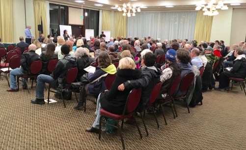 The meeting began with questions. Those wanting to ask were given a numbered piece of paper. Mixed in with the questions were asides like: