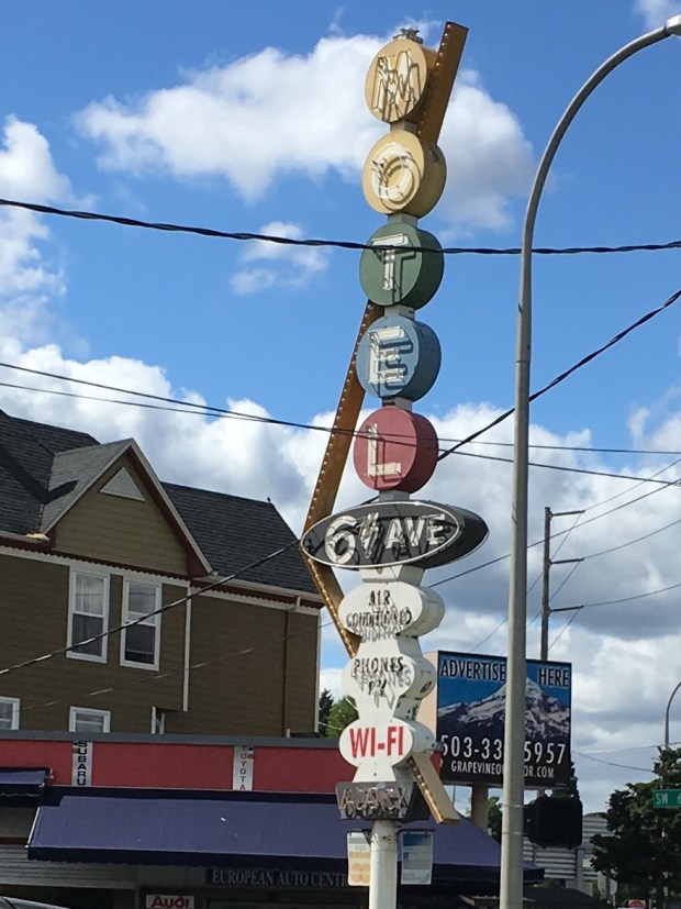 I never figured out this stretch of SW 45th and the reason for reminders for people to pump the brakes. A slight curve and a deep ditch contribute the need to heed a sign slow down. The handmade sign coexists with a regular traffic sign. The slangy nature of the sign’s phrase made me realize how much sense it makes to replace two vowels with the letter “e.” Take the sign’s advice. Read this post slow. It has words with curvy letters that might crash your brain.