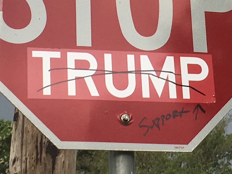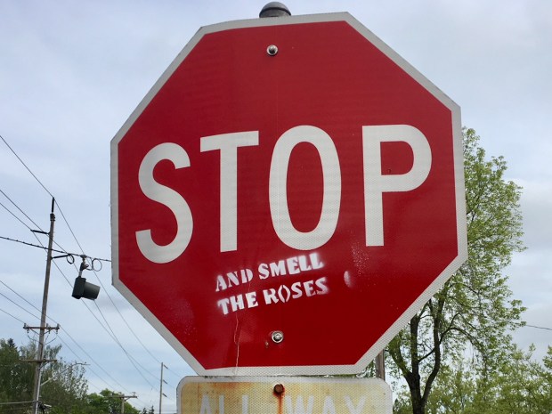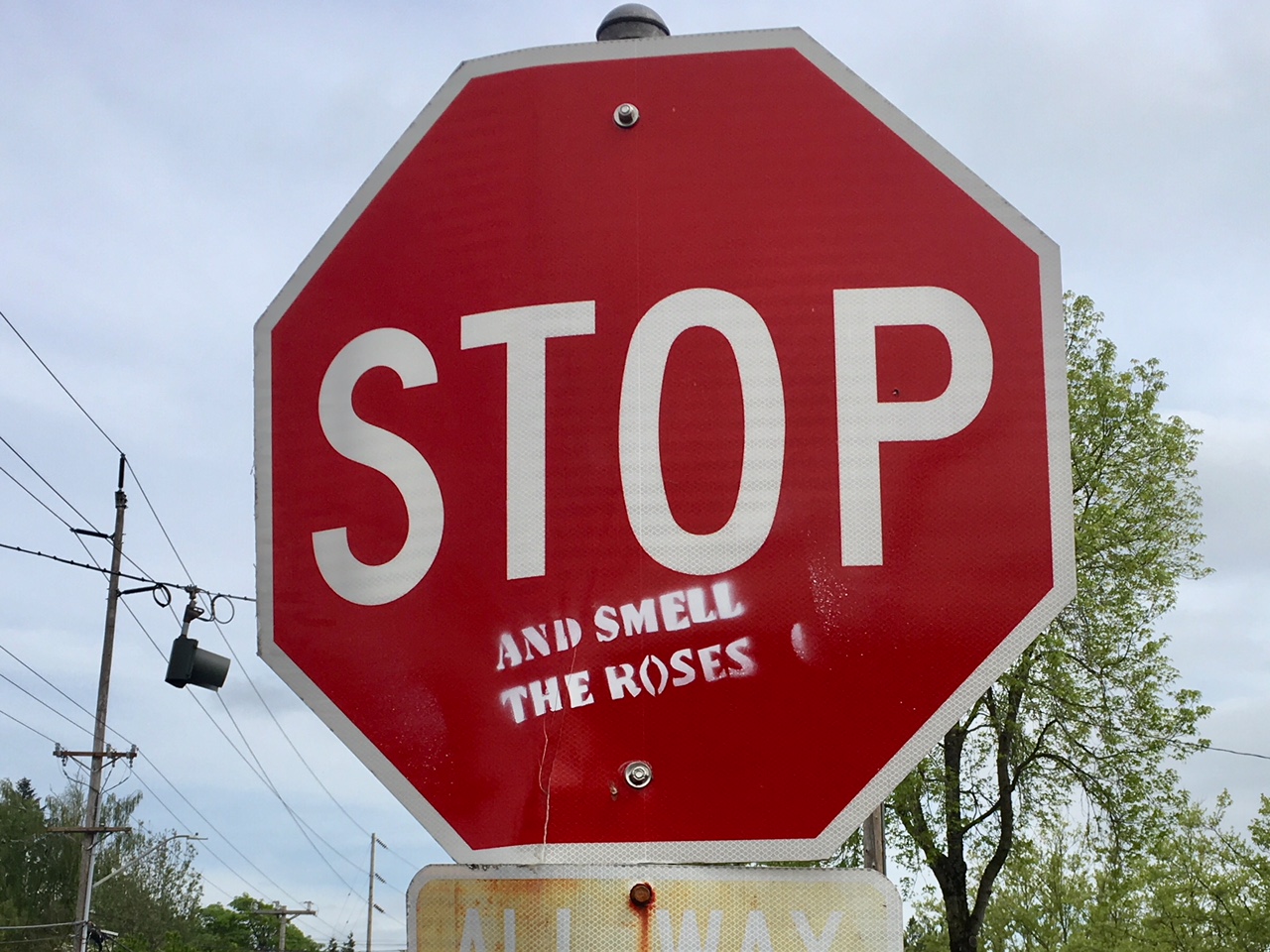 A tiny student made stop sign graces the entrance to the Sunstone Montessori School in South Portland. Who is being asked to stop? It’s almost unnoticeable. Perhaps students get extra credit for sign making. Their method proved more interesting than an average stop sign.