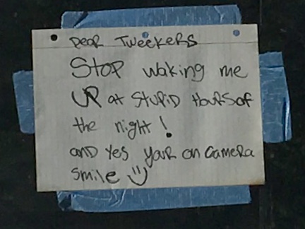 I spotted multiple video surveillance signs, none of them homemade, but I was struck by the different old school cameras and the imposing thought of being watched every and anywhere. There’s footage of me taking pictures of signs that warn me about being surveilled. I get it. No one wants their Walgreen walls or parking lots messed with. Let these signs be a reminder of the many reasons it’s better to remain behind cameras.