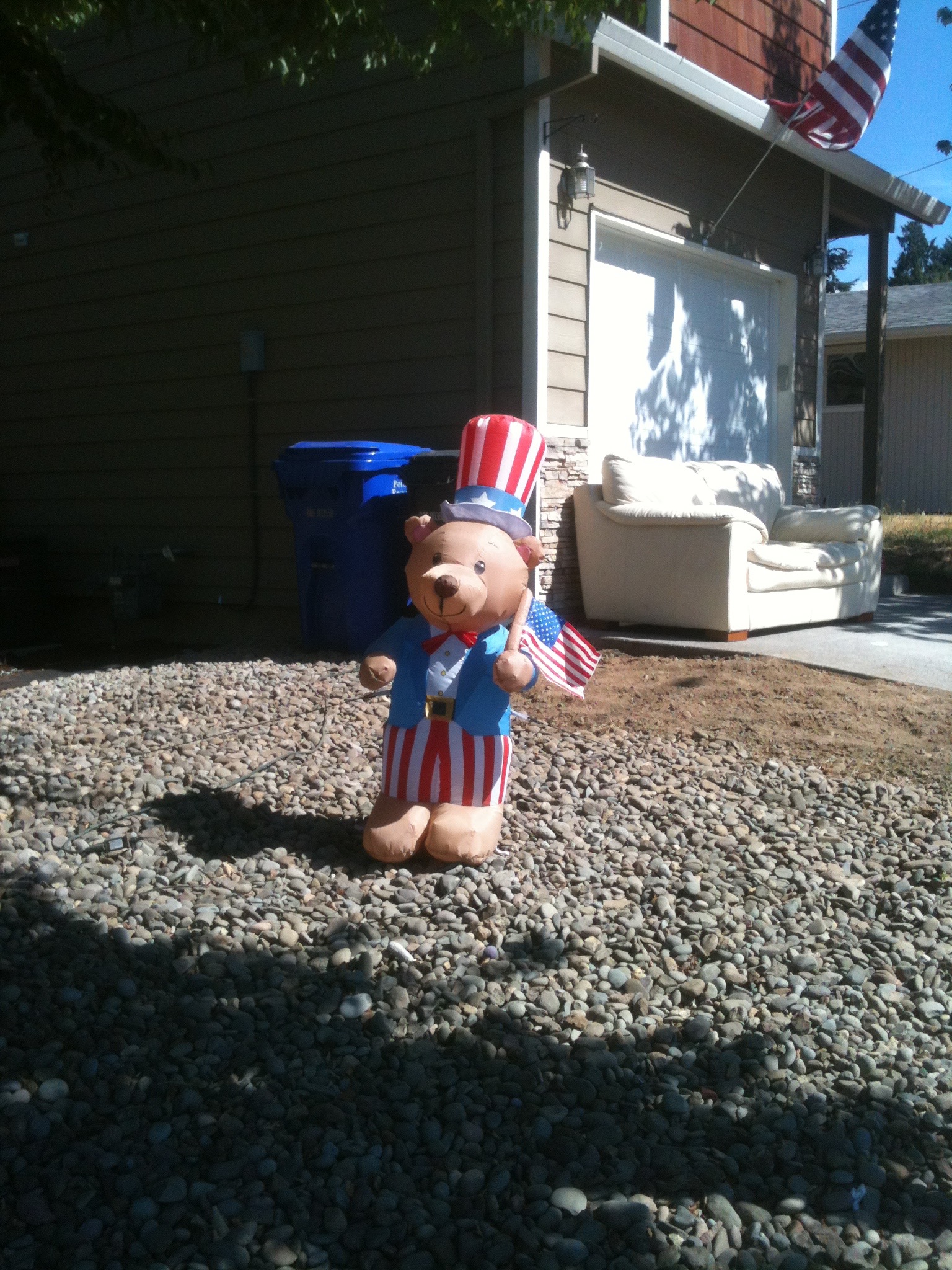 Spotted in the Mt. Scott-Arleta neighborhood, this flag decoration may be store-bought but it brings out a sentiment straight out of the Pledge of Allegiance. We are one nation indivisible and all that. This lone star represents this ideal of singular unity and it does it well.