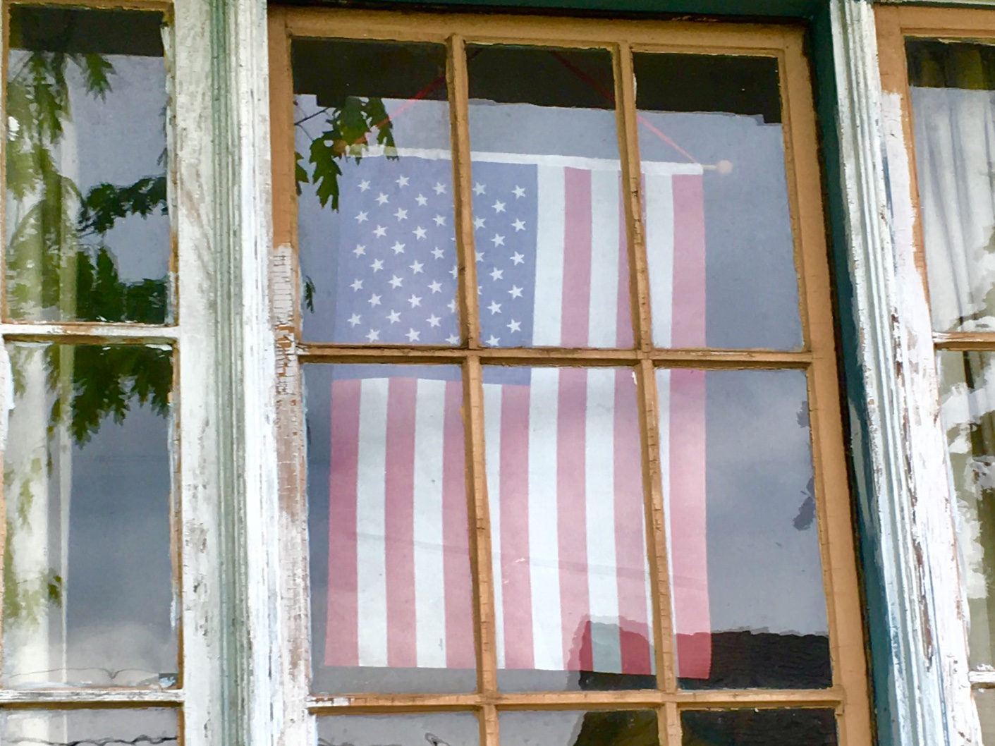What better way to display a flag than behind glass in a window. It may fade in time but it’s less likely to become frayed from the elements. It’s subtle, alluring even and allows for display any time of day or night.